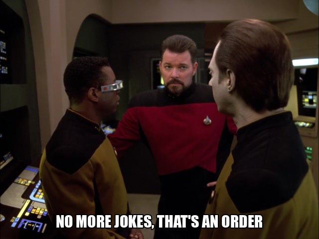 Followed by Data asking LaForge to explain the joke to him, like the limerick about a young lady from Venus.