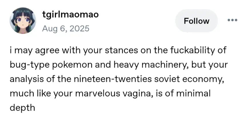 Only because they are authoritarian dick sucks and crash out over any reasonable analysis